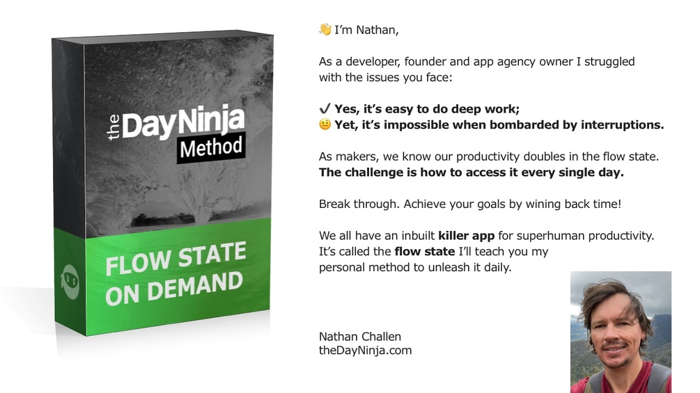 I’m teaching you my personal method to induce the flow state on demand. As a developer, founder and app agency owner I struggled with the issues you face: